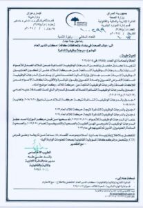 وزارة الصحة توجه كتاب الى كافة دوائر الصحة لتزويدها بأعداد الدرجات الوظيفية الشاغرة