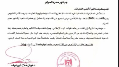 هيئة الإعلام والاتصالات تدعو المؤسسات الاعلامية إلى الاهتمام بلائحة قواعد البث الإعلامي، ومراعاة قدسية هذا الشهر واحترام خصوصيته ونبذ خطاب…