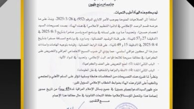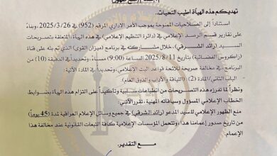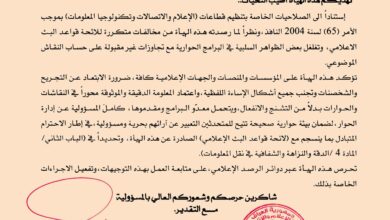 هيئة الإعلام والاتصالات تدعو المؤسسات الاعلامية إلى الاهتمام بلائحة قواعد البث الإعلامي، ومراعاة قدسية هذا الشهر واحترام خصوصيته ونبذ خطاب…